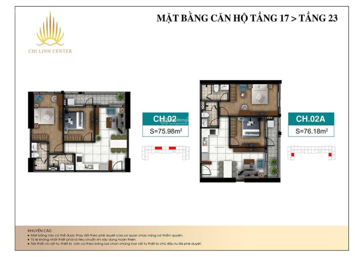 - Căn hộ 02 phòng ngủ: 72m2, 76m2, 84m2, 86m2.