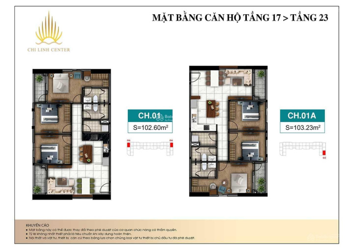 - Căn hộ 03 phòng ngủ: 92m2, 103m2.