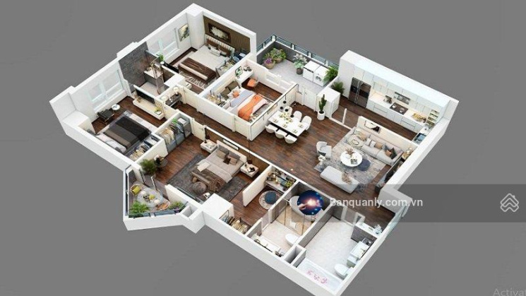 - Phòng ngủ 1: 14m; Phòng ngủ 2: 13m; Phòng ngủ 3: 11m; WC 1 + 2: 6,78m; Logia 1 + 2: 5.3m.