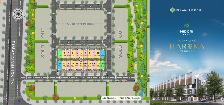 Nhà phố liền kề Midori Park Haruka đã được CĐT Becamex Tokyu mở bán với tổng 2 dãy, 22 căn nhà liền kề.