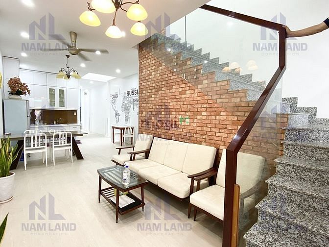 Trệt, lầu, sân thượng, full nội thất như hình, độ mới 90%, có bếp, bàn ăn, bàn làm việc, máy lạnh