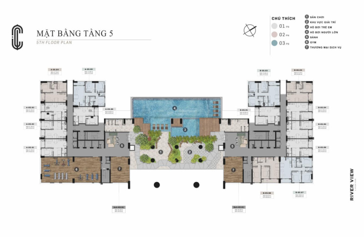 Căn 1pn: 44 - 46m2.