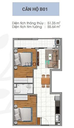 * Diện tích căn hộ 2 phòng ngủ từ 52 - 70m2/Giá chỉ từ 1.28 tỷ/căn 2PN.