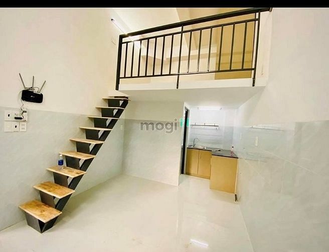Có gác cao, trong phòng có sẵn nội thất cơ bản như điều hòa, máy nước nóng, bếp, bồn rửa và tủ quần áo.