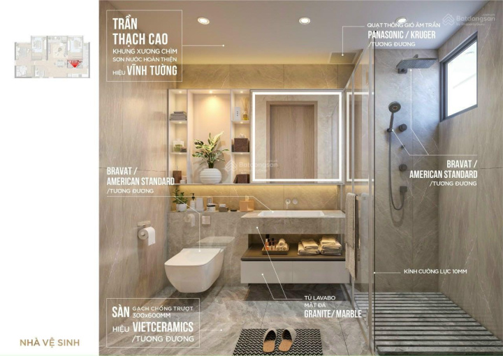 Bảo chứng bởi tiêu chuẩn vật liệu hoàn thiện từ các thương hiệu danh tiếng thế giới: Bosch, Hafele, American Standard...