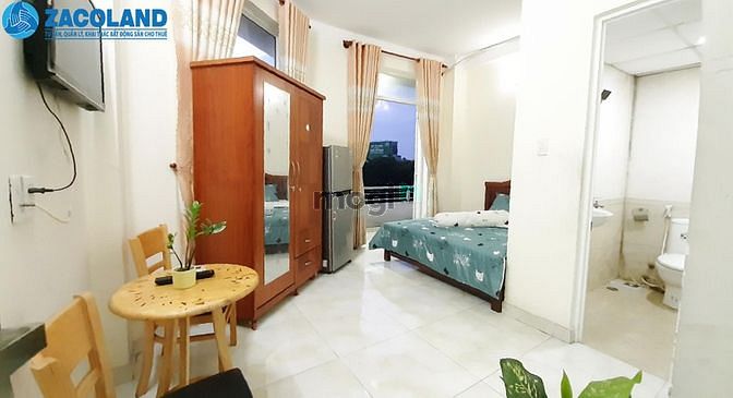 Căn phòng đã được trang bị gần như đầy đủ: giường nêm, chăn ga gối, tủ áo quần, bàn ghế làm việc, máy lạnh, tủ lạnh, TV...