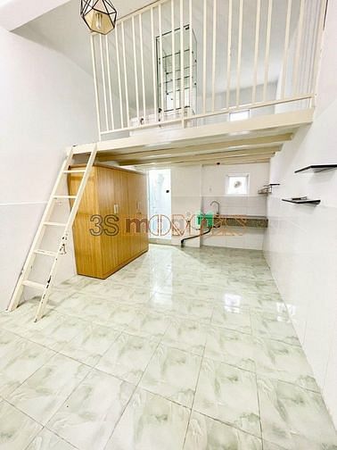 Phòng gác lửng, nội thất cơ bản gồm: máy lạnh, tủ đồ, máy nóng lạnh, kệ bếp+ bồn rửa