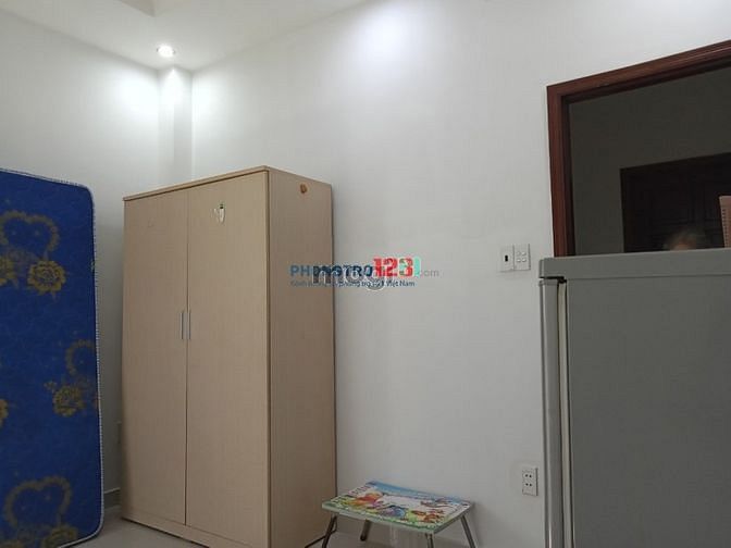 Cho thuê phòng diện tích 20m2. Phòng trang bị đầy đủ: Tủ lớn, nệm, rèm cửa, máy lạnh, quạt, tủ lạnh, sàn gạch, free wifi.