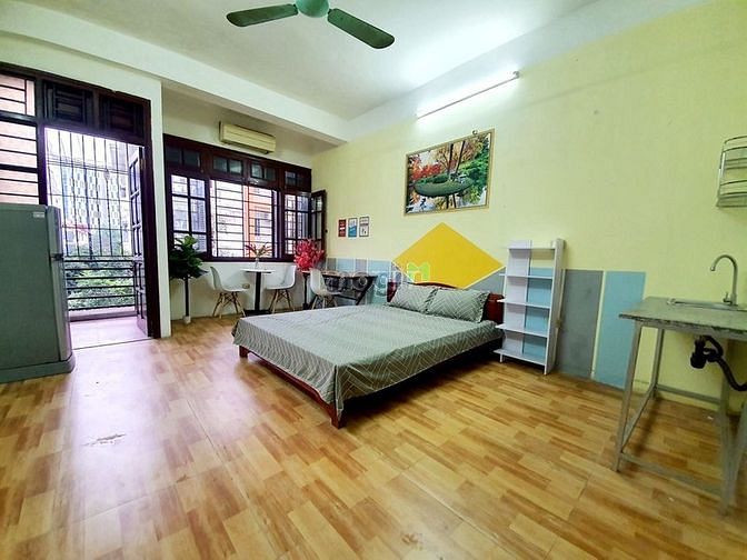 * Nội thất: Điều hòa, Nóng lạnh, máy giặt chung, tủ lạnh riêng, tủ quần áo, bàn làm việc, đệm, giường,...