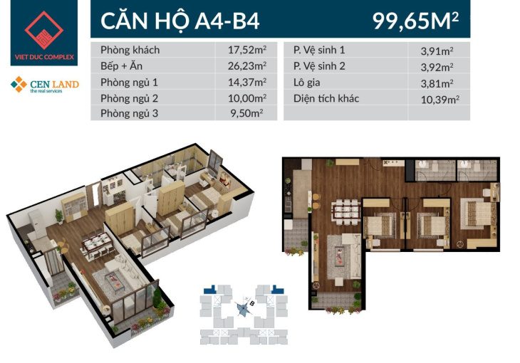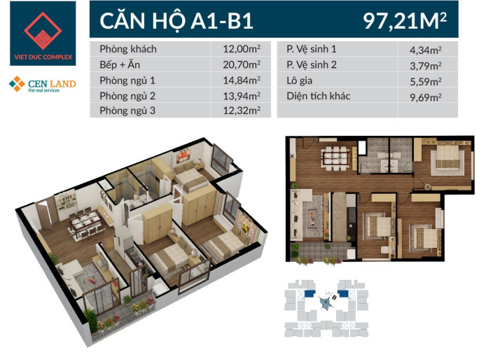 + Căn B1001 diện tích 97m. View bể bơi.
