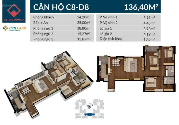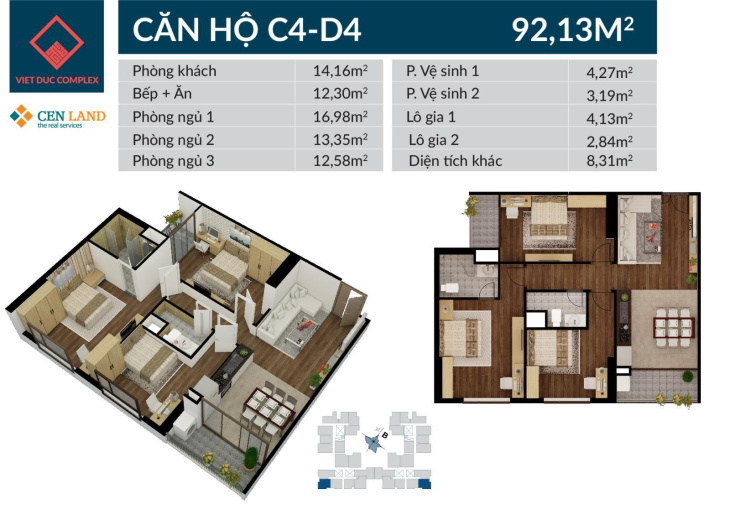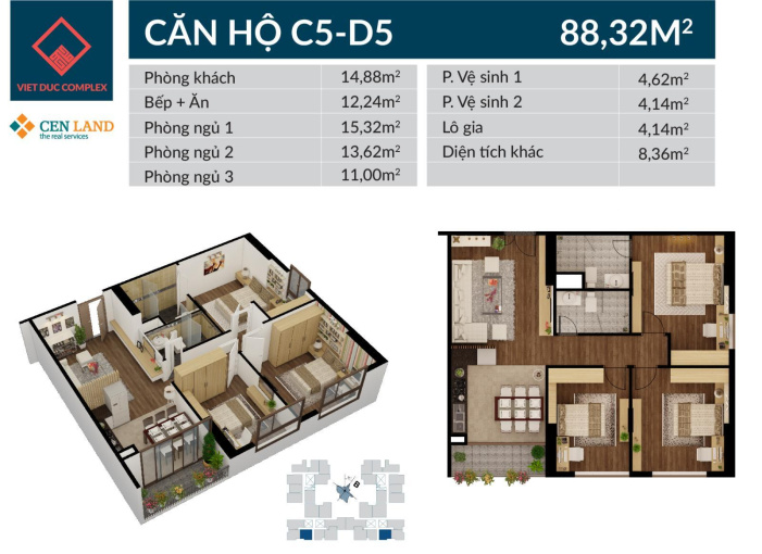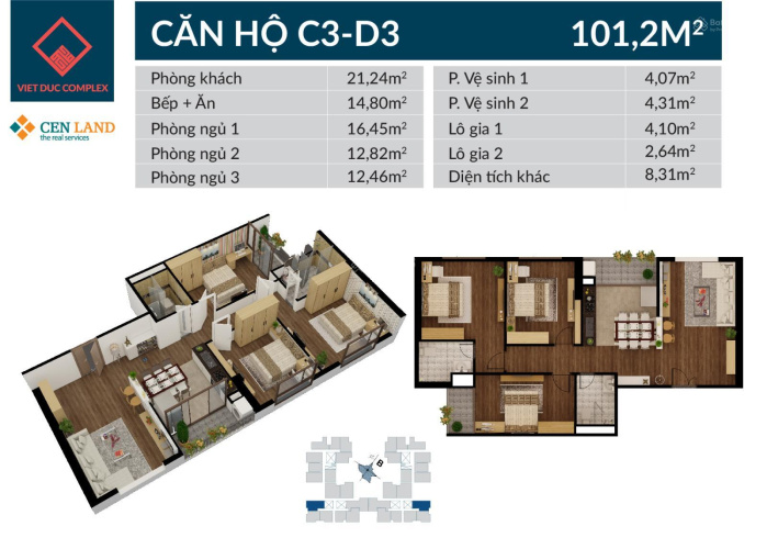 + Căn D1503 diện tích 101m, căn góc toà D.