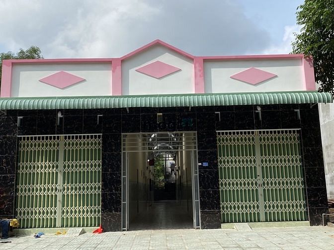 Tôi thiết kế xây 1 dãy, được thiết kế thoáng mát, có gác đúc, gạch ốp men, có nhà vệ sinh riêng từng phòng, cáp quang, bếp đúc, phòng tôi xây rất thoáng có cửa sổ,ban công ...vị trí căn này của tôi sát khu công nghiệp sản xuất sữa tươi, và công ty may mặc, có chợ, trường học, đại học, nhà trẻ đều có,mặt tiền đường lớn rộng xe oto chạy vào được.
