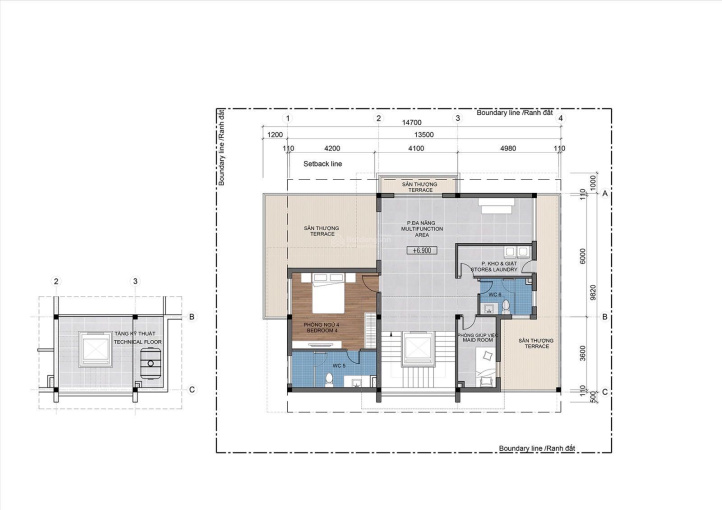 Diện tích 140m2. Xây dựng 100m2, tổng sàn 306m2.