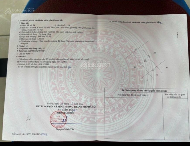 Siêu phẩm còn lại duy nhất tại khu đô thị Văn Quán Hà Đông, DT đất 240m2, mặt tiền 10m, hướng Tây Bắc, được tự thiết kế và xây được 6 tầng, mặt đường đôi Văn Quán cạnh hồ Văn Quán, sổ đỏ chính chủ cầm tay cần bán: Giá 56 tỷ.