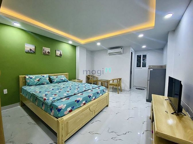 Diện tích 30m2. Phòng được trang bị đầy đủ nội thất: Giường nệm, tivi, tủ lạnh, máy lạnh, nóng lạnh, bàn trang điểm, bàn ghế làm việc, tủ quần áo, kệ bếp, tủ bếp, bếp điện từ,…