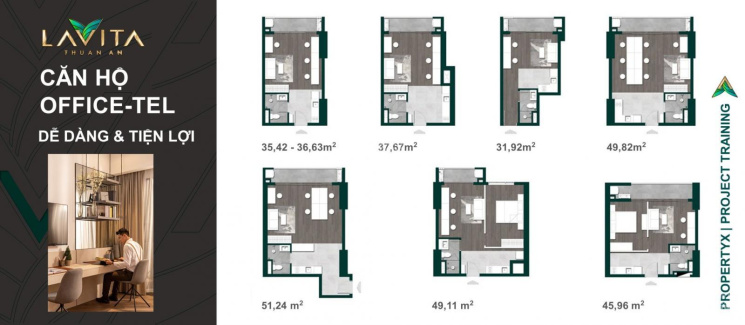 - Officetel: DT 35 - 51m2.