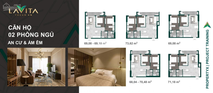 - Căn 2PN: DT 69 - 74m2.