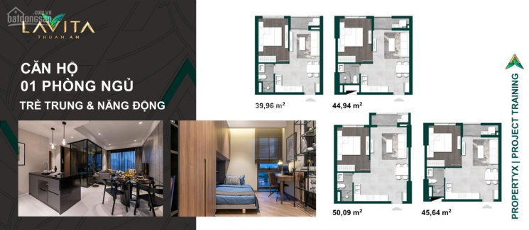 - Căn 1PN: DT 39 - 50m2.