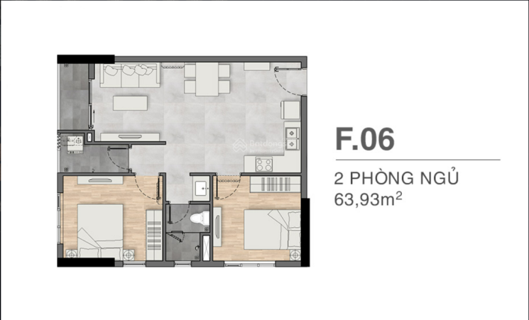 + Căn 2 PN diện tích 62 - 65m2.