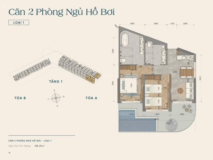 2 phòng ngủ có hồ bơi riêng siêu hiếm - View trực diện biển và nội khu.
