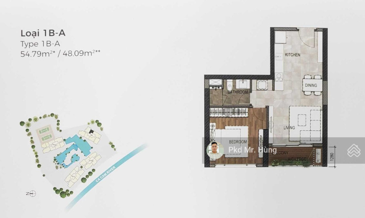 - Căn 1pn DT 55m2.