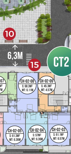 Căn tôi ở tòa CT2, diện tích 68m2, mặt kính 2 vách + 2 cửa thông thoáng, có sẵn 1 WC sẵn.