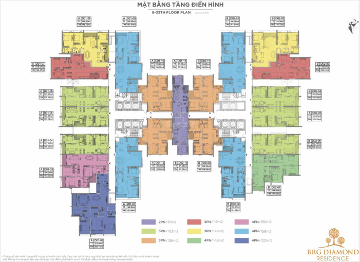 + Căn 4PN: Diện tích 146 - 150 - 158 - 202m.