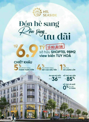Chủ đầu tư HTL Việt Nam chính thức ra mắt dự án HTL Seaside Tuy Hòa nằm tại mặt đại lộ Hùng Vương rộng 42m TP. Tuy Hòa, chiết khấu 400 tr, hỗ trợ vay 85% lãi suất 0% trong 18 tháng. Hotline: 0965 112 171.