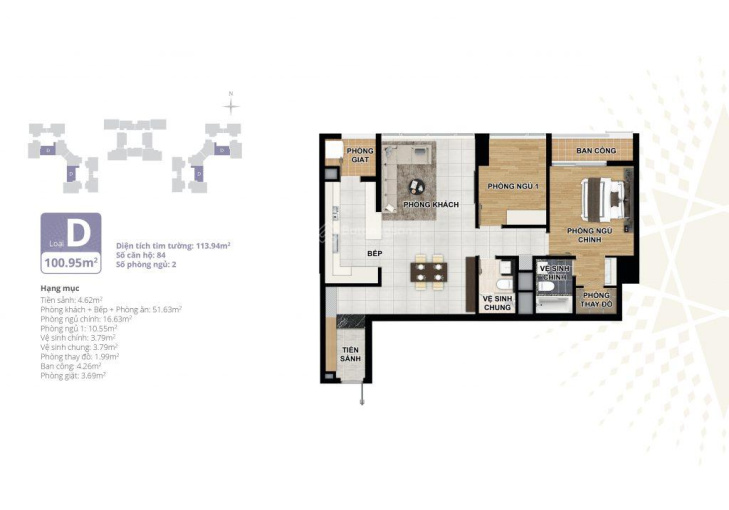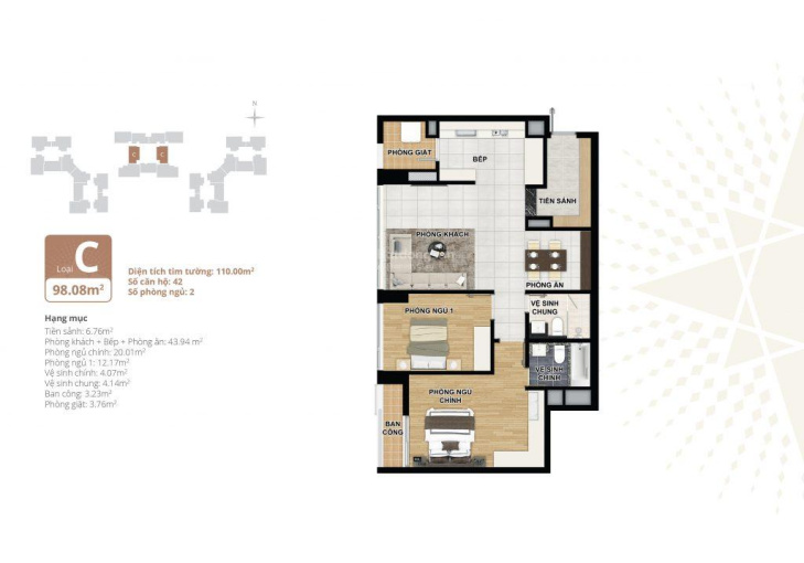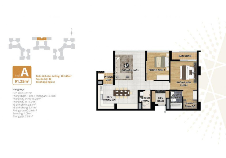+ Căn 2 phòng ngủ diện tích: 101m hướng Nam view trọn công viên giá 7. X tỷ.