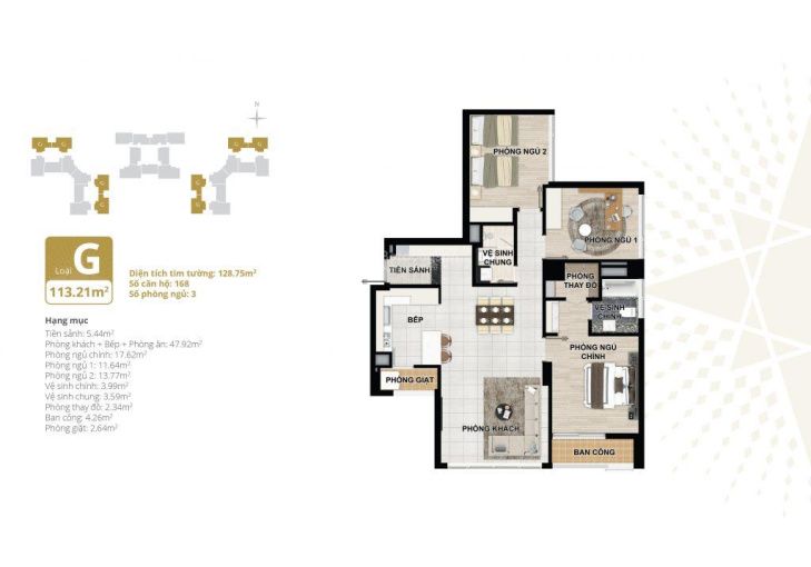 + Căn 3 phòng ngủ diện tích: 125m 2 hướng trục đường chính nội khu giá bán 9. X tỷ.