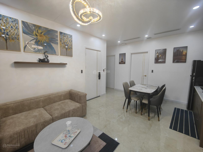 Nội thất: Căn hộ mới hoàn thiện cao cấp, điều hòa âm trần 2 chiều, lọc không khí, lọc nước tổng, nước nóng trung tâm, bồn tắm, bếp khô và bếp ướt, thiết bị vệ sinh ToTo, khóa điện tử, tivi 55 inch...