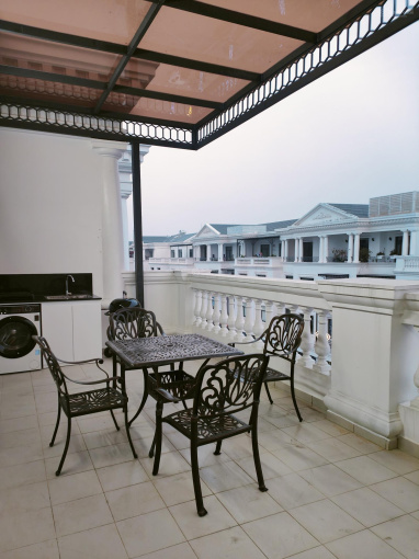 Ban công siêu to khổng lồ, có sẵn lò nướng BBQ, bếp phụ nấu nướng ngoài trời.